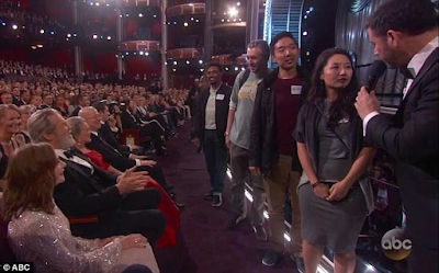 Some very lucky tourists taking a bus tour in Hollywood were pleasantly surprised after their bus made an unexpected stop and they were led into the Dolby Theatre were the Oscars was taking place, giving them a chance to meet with all the stars present at the Academy Awards.